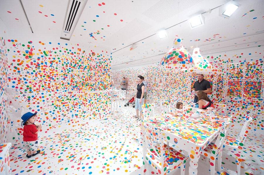 L’artista Yayoi Kusamanel, nel mese di dicembre 2011, ha realizzato il progetto The Obliteration Room costruendo, all’interno della Queensland Art Gallery, un grande ambiente domestico completamente arredato e funzionale. Per lo spazio è stato utilizzato un arredamento totalmente bianco, in puro stile “total white”. Una scelta non casuale, ma studiata in vista di una sorprendente trasformazione…