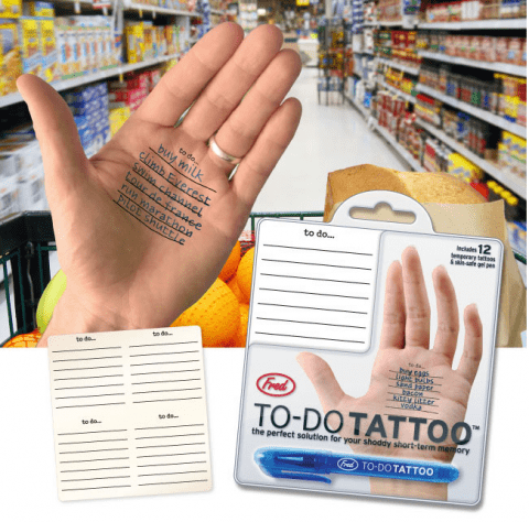 ToDo Tattoo 29 Gen 2013 Antonio Italia Total0ToDo Tattoo è il tatuaggio vintage per ricordare i vostri impegni, le cose da fare o la lista della spesa! Potete acquistarlo qui.