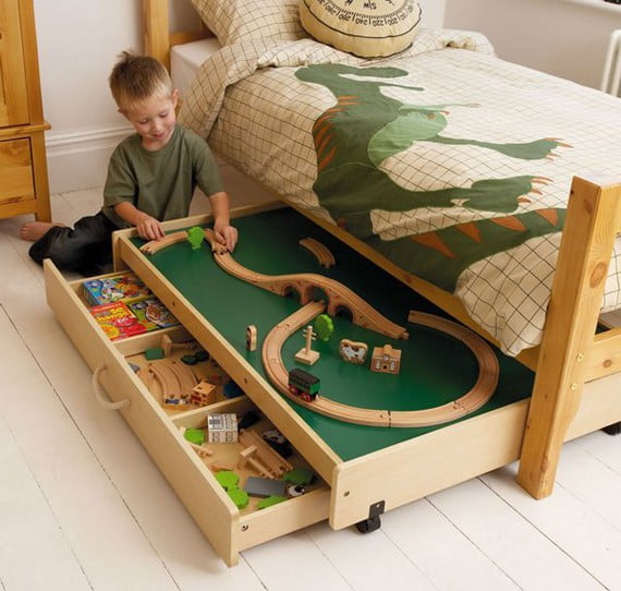 Trundle Playtable, realizzato da Thomas & Friends, è un cassetto in legno che diventa un tavolo sul quale far giocare i bambini. Quando non si utilizza si nasconde perfettamente sotto il letto. Si può acquistare qui.