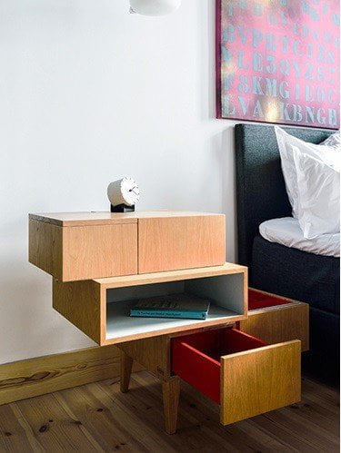 Un’ardita combinazione di mensole, contenitori e cassetti, ed ecco il comodino perfetto che ciascuno vorrebbe nella propria camera da letto!
