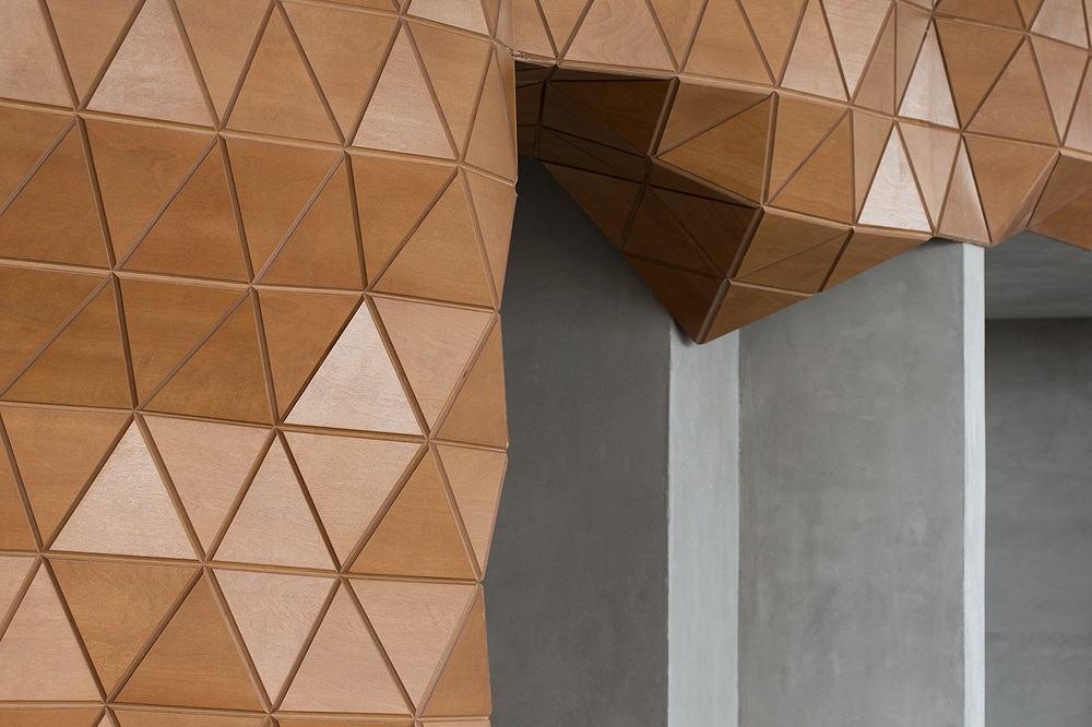 Grazie all’ausilio della tecnologia digitale 3D, un materiale rigido come il legno diventa flessibile, in grado di assumere ogni forma, come fosse un tessuto.