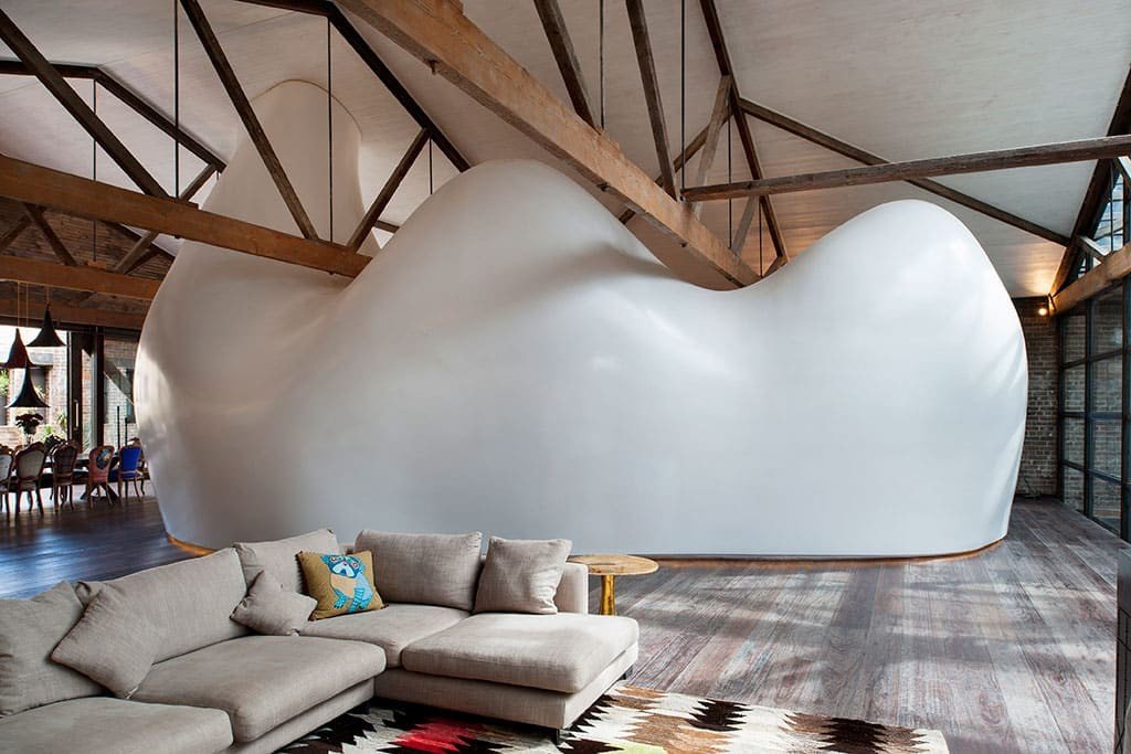 Nell’ambito di un lavoro di ristrutturazione, lo studio AJ + C ha progettato una struttura in fibra di carbonio, che con le sue forme sinuose si inserisce nell’architettura interna della casa.