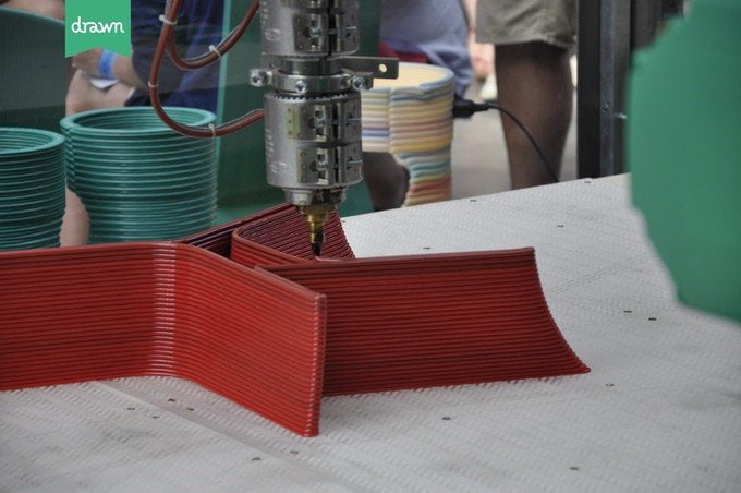 La stampante 3D realizza mobili personalizzati utilizzando lo stesso materiale impiegato per i mattoncini Lego. Galatea lavora depositando strato su strato un filamento di materiale a 230 ° C.
