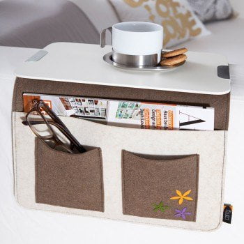Il vassoio permette di consumare snack e bevande sul divano in tutta comodità, e di avere ogni cosa a portata di mano. 4 tasche portaoggetti si aggiungono alla base da appoggio, mettendo a disposizione diversi spazi per riporre gli oggetti.