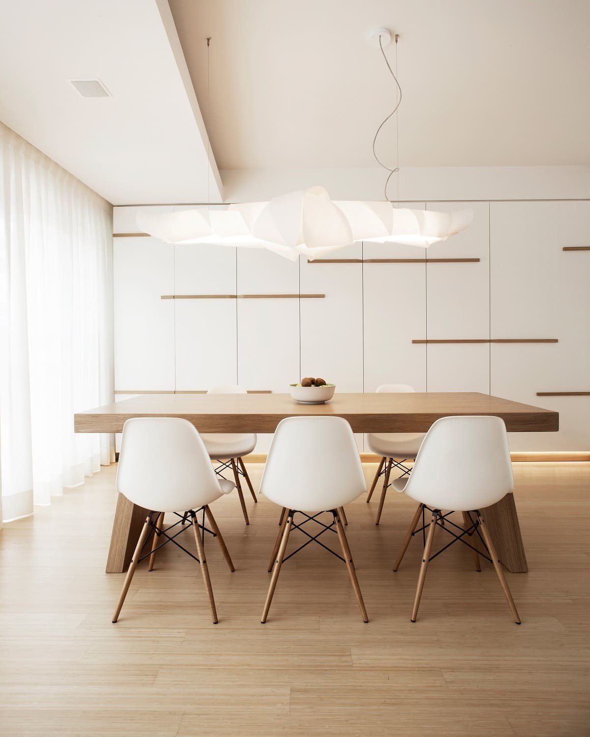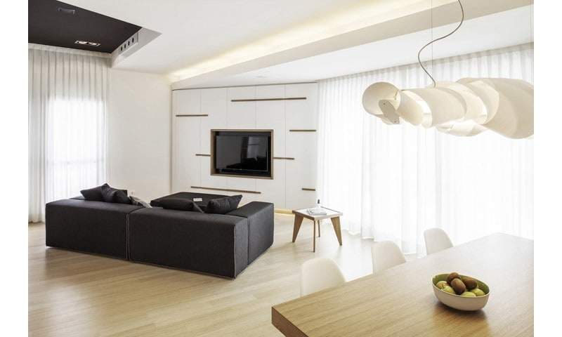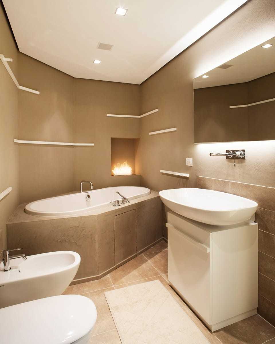 Particolarmente elaborato è infatti lo studio illuminotecnico, che permette alti livelli di personalizzazione nella modulazione delle luci in tutti gli spazi della casa, per creare atmosfere sempre nuove nel corso della giornata. Ancor più accurata la progettazione degli arredi – realizzati interamente su misura – tra cui spicca la cucina progettata da Studiòvo, caratterizzata da un’inedita e ininterrotta curvatura delle superfici. Un lavoro di alta falegnameria realizzato dagli artigiani di Officine 3076, chiamati non solo a realizzare i mobili, ma a farli calzare come guanti nell’involucro grezzo della casa.
