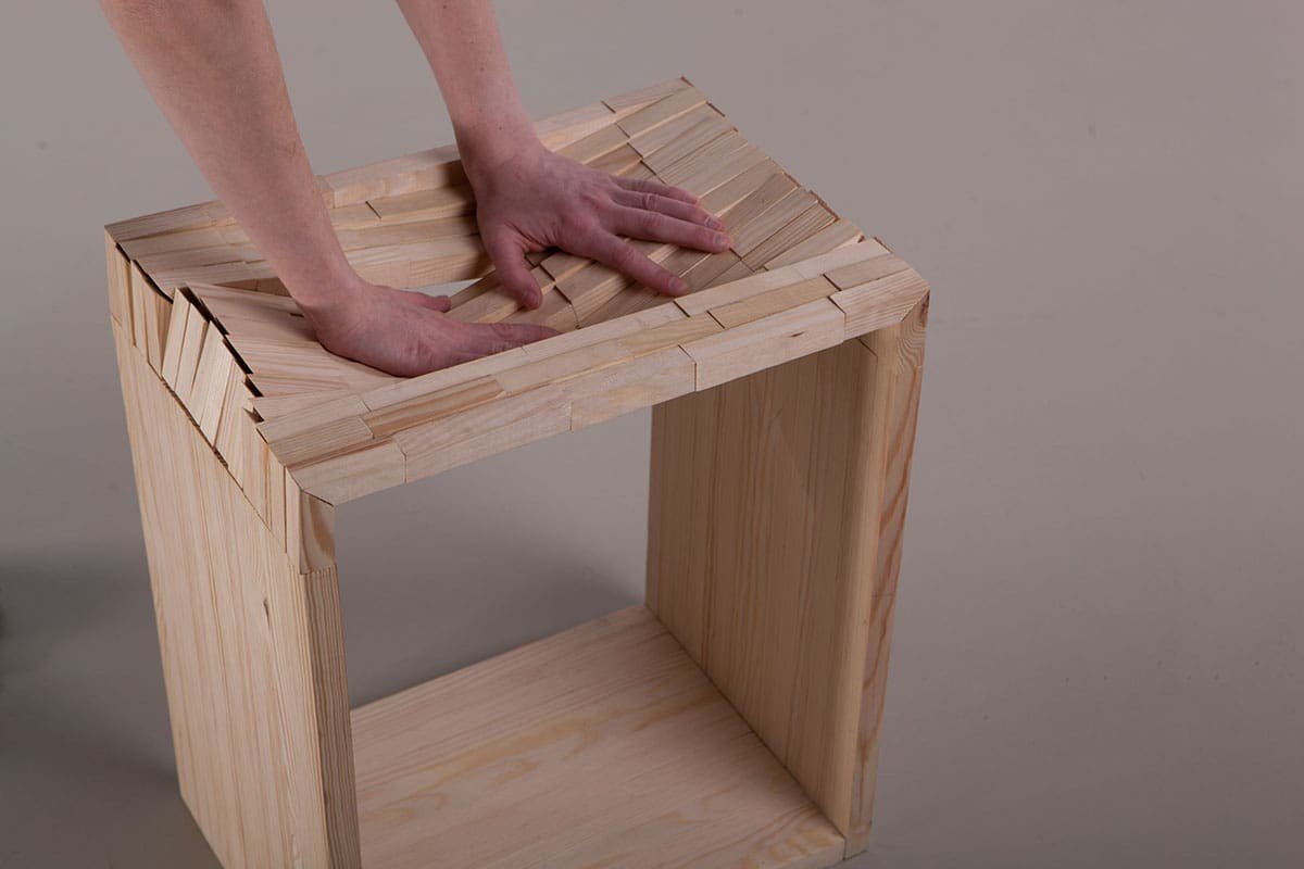 La designer Ewa Dulcet gioca su questo aspetto, progettando uno sgabello ad effetto sorpresa.