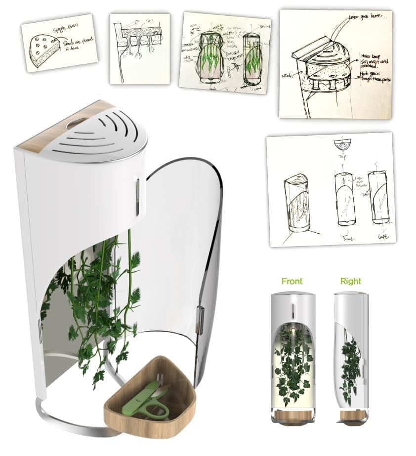 L’invenzione si chiama Verdure ed è un sistema per coltivare erbe aromatiche direttamente in cucina. L’idea non deve spaventare chi non ha il pollice verde, perché il meccanismo è tutto automatizzato: una spugna accoglie i semi, una luce alogena a batteria aiuta la crescita, ed una copertura trasparente protegge la pianta dal vapore della cottura. Un indicatore di livello sul fronte avverte, inoltre, quando è necessario aggiungere dell’acqua.