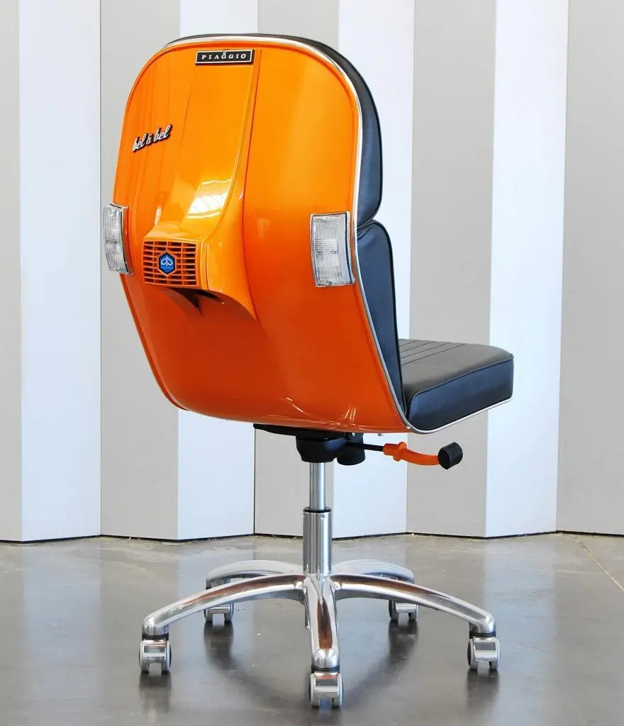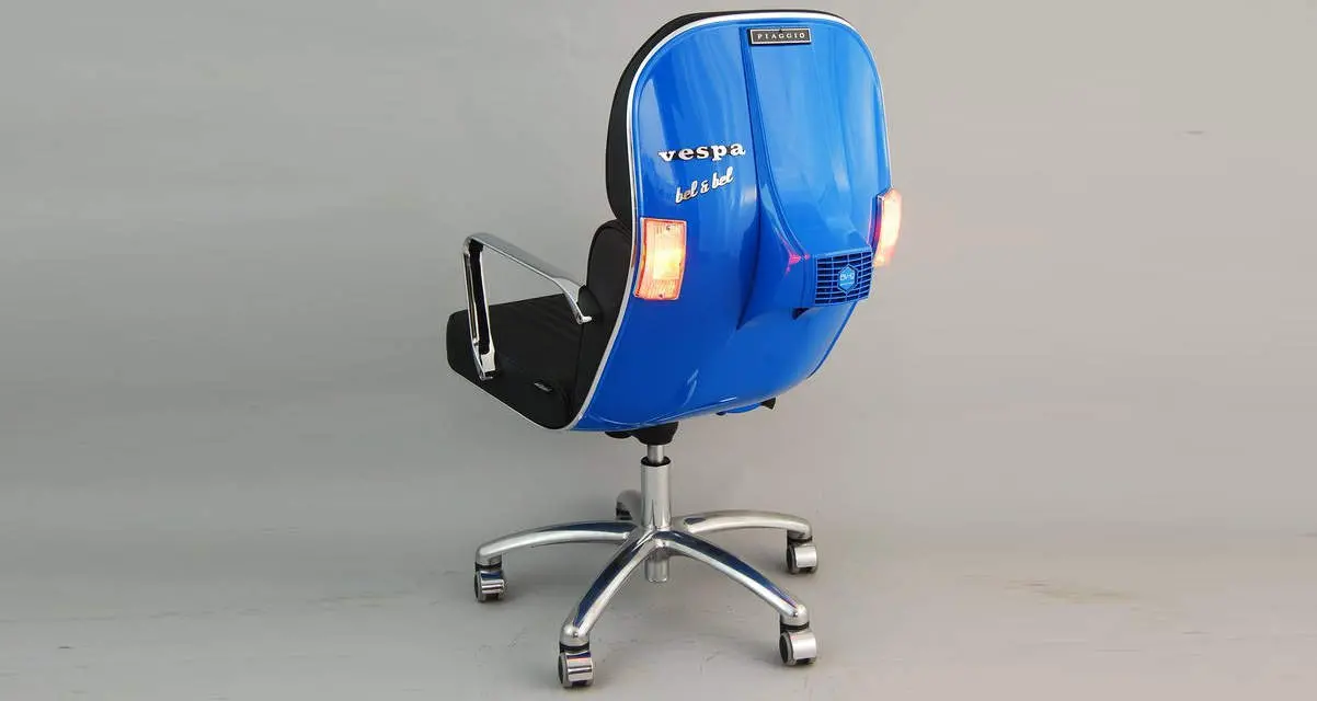 Bel & Bel, uno studio-laboratorio di Barcellona, ha realizzato Vespa BV-12 Chair, un’elegante sedia girevole in pelle dal look retrò a forma della mitica Vespa Piaggio. Smart, comoda, ergonomica, con le luci funzionanti, disponibile in differenti colorazioni anche su thefancy.com.
