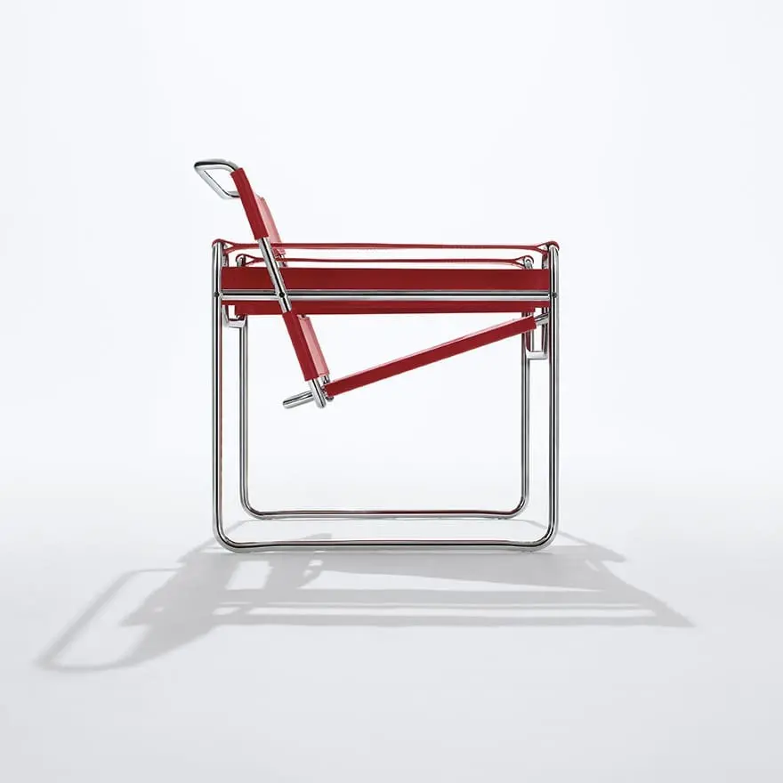 Una seduta disegnata da Marcel Breuer ispirata alle forme del telaio di una bicicletta, realizzata con tubi di acciaio dal design pulito e moderno.
