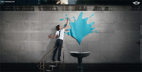 L’agenzia pubblicitaria BBDO Milan ha realizzato per Mini BMW MiniMalism, una adv per il rispetto dell’ambiente e in particolare dell’utilizzo dell’acqua: “Water thinking” invita a un consumo saggio, magari riclando ironicamente l’acqua piovana per annaffiare le piante o suonare la batteria.