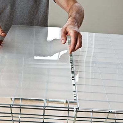 Un originale progetto fai da te per realizzare un tavolino semplice e moderno. La struttura è costituita da due lastre in plexiglass, utilizzate come piano, e sei griglie metalliche, unite con delle fascette, che fungono da piedi. Che aspettate? Procuratevi tutto il materiale e seguite la dettagliata guida fotografica o il video tutorial sottostante.