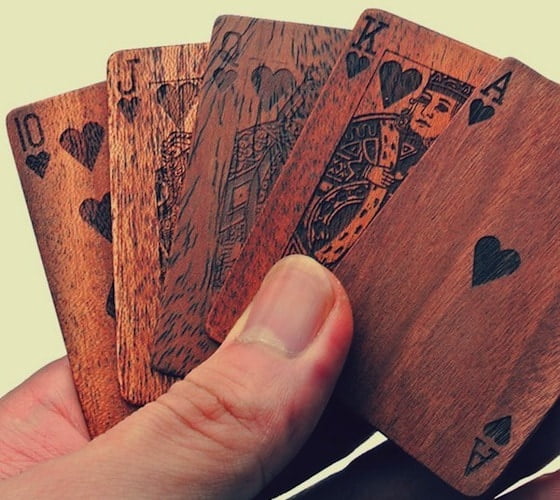 Wooden Deck of Cards 21 Feb 2013 Antonio Italia Total0Le Wooden Deck of Cards, le carte da poker incise nel legno e confezionate in una custodia in pelle, si possono acquistare qui.Via thegadgetflow.com