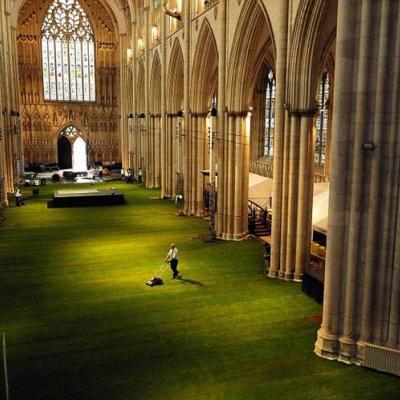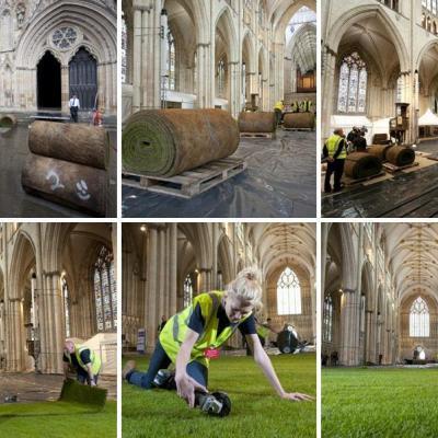 Per il Diamond Jubilee della Regina Elisabetta, la compagnia britannica Lindum ha installato un pavimento in erba wow! grass! all’interno delle navate della bella cattedrale gotica di York, nel Regno Unito. I rotoli d’erba realizzati con materiali riciclati coprono circa 1500 metri quadrati.