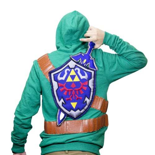 Zelda Sword and Shield Sweater 7 Ott 2013 Antonio Italia Total0Su geekyu.com è possibile acquistare Zelda Sword and Shield Sweater, la felpa, con cappuccio, di Zelda con la spada ricamata dietro le spalle e la cintura in pelle.